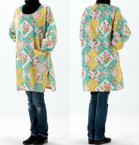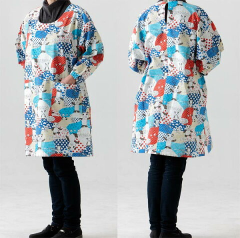 たっぷり ゆったりかっぽう着(割烹着)フリーサイズ丈長丸スリットタイプ632ロボット生地も縫製も日本製