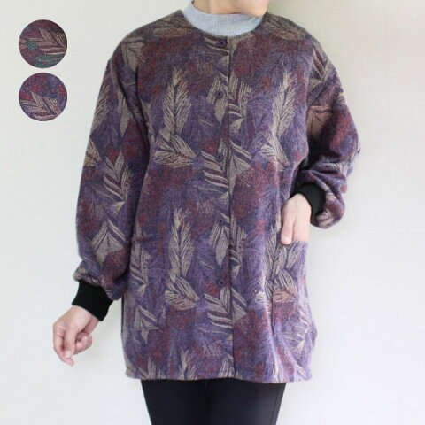 【日本製】 あったか ウール混 裏ボア スモック レディース 50代 60代 70代 80代 ミセス シニア ファッション 婦人服 大人 ゆったり 大きいサイズ 葉柄 秋 冬 母 おばあちゃん プレゼント ギフト 敬老の日
